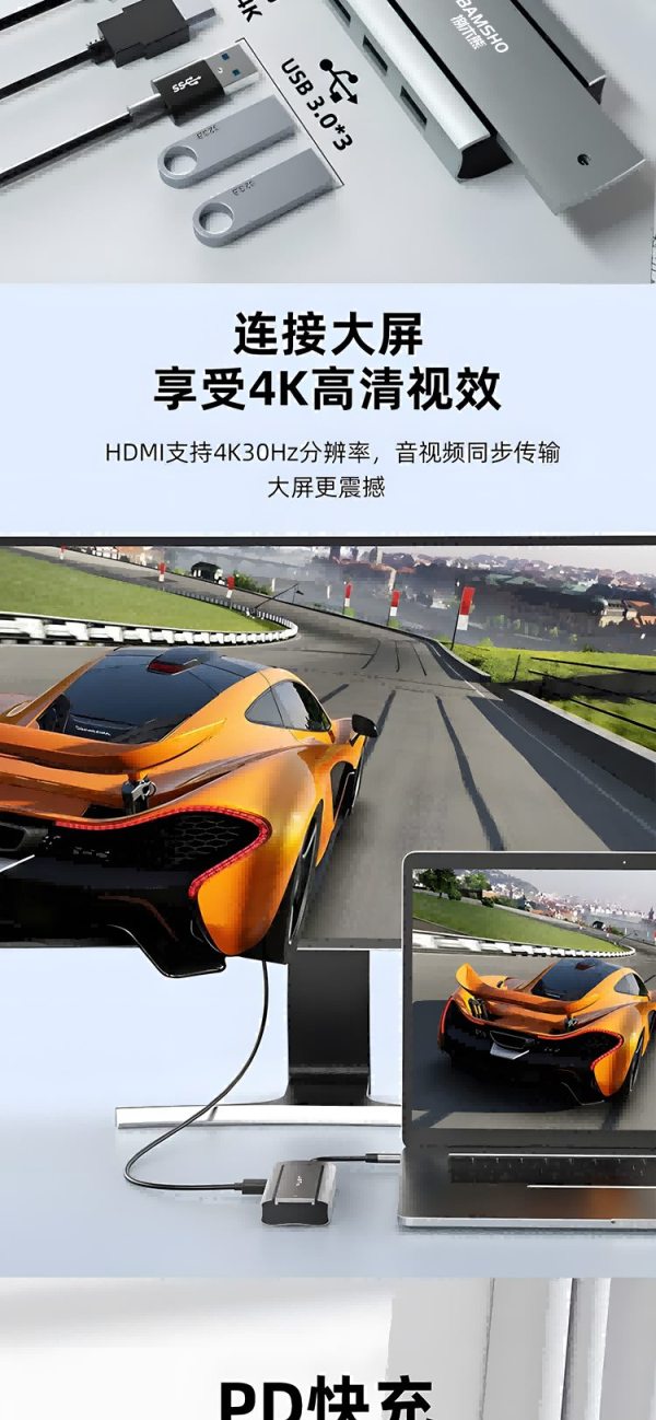 捌木熊 GJC-JXQ00002 集线器(扩展坞)6合一(单位:个)银灰色