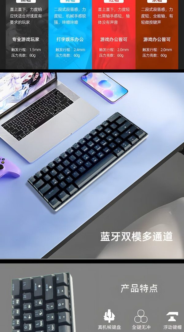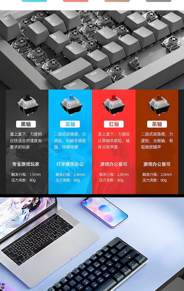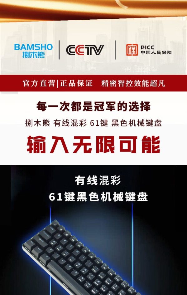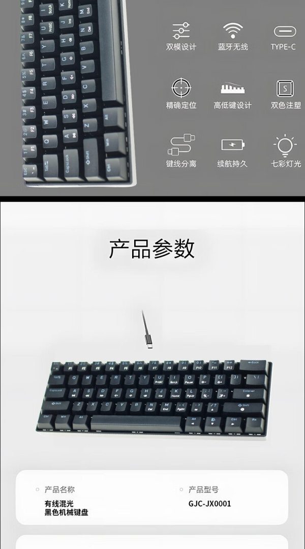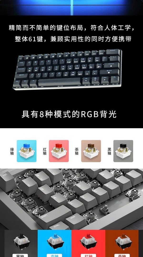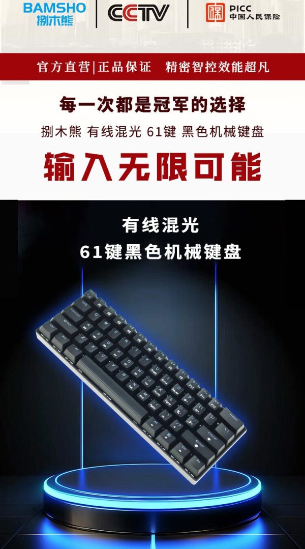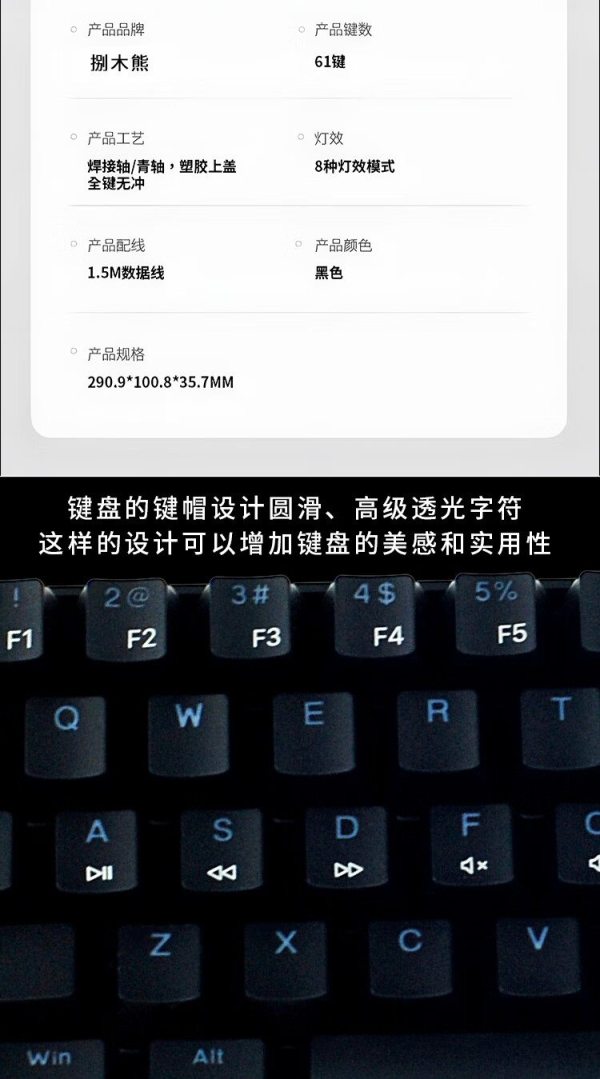商品名称:捌木熊 GJC-JX0001 有线混彩61键 黑色机械键盘(计价单位:个)