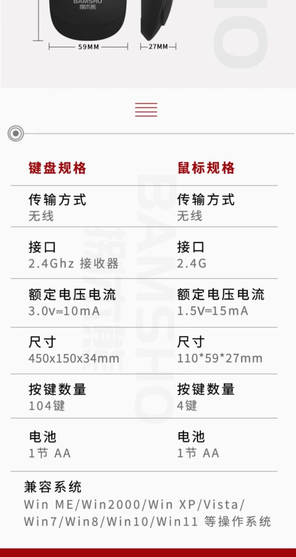 商品名称:捌木熊 GJC-WXJS0003 无线2.4G键鼠套装(单位:套)黑色