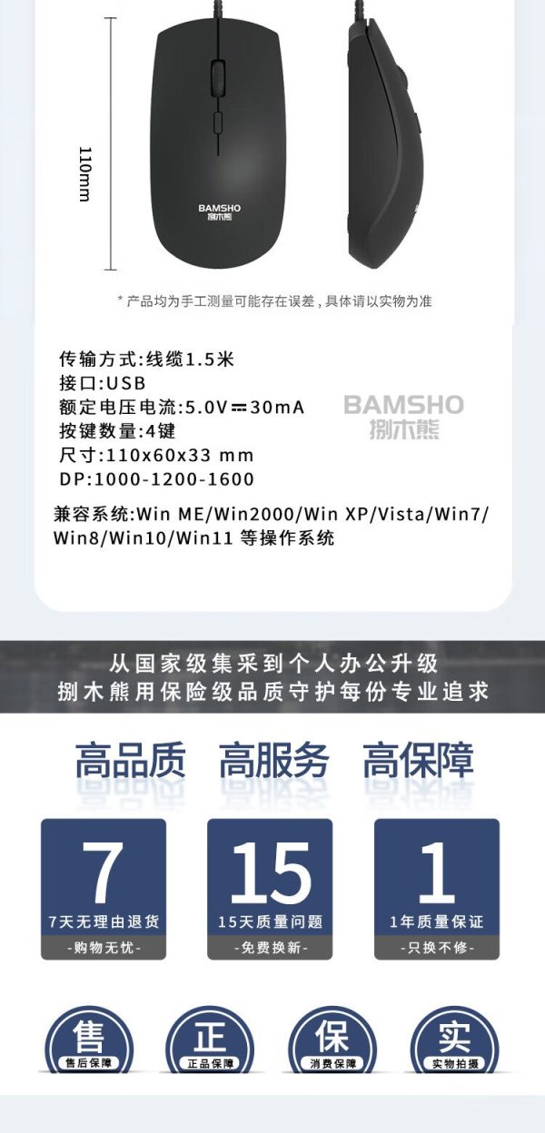 商品名称:捌木熊 GJC-YXJS00001 办公鼠标 有线鼠标(单位:个)黑色