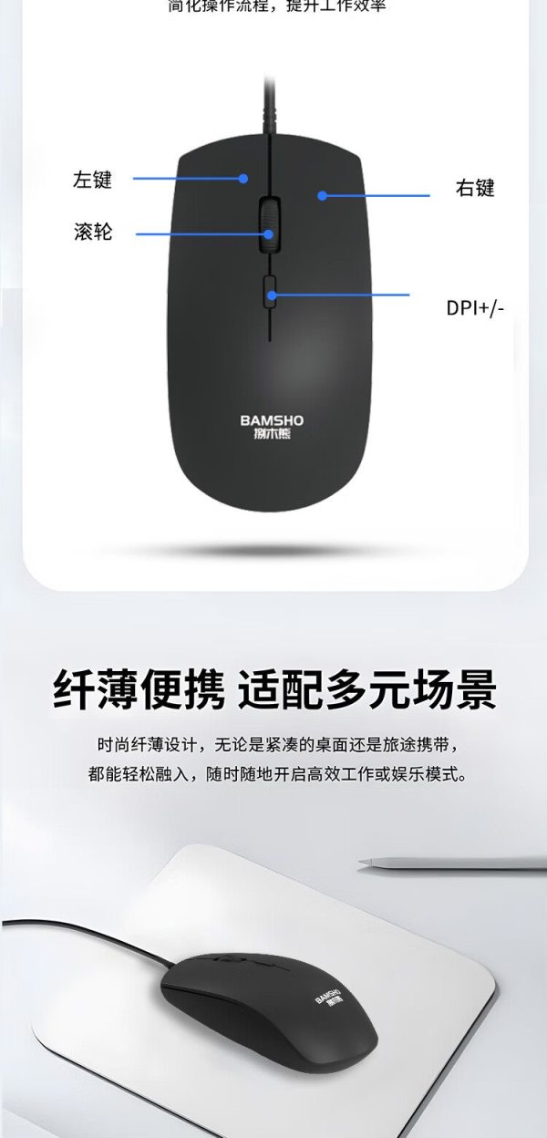 捌木熊 GJC-YXJS00001 办公鼠标 有线鼠标(单位:个)黑色