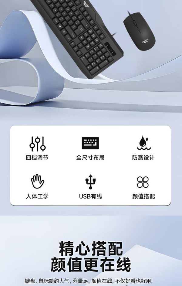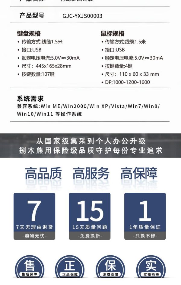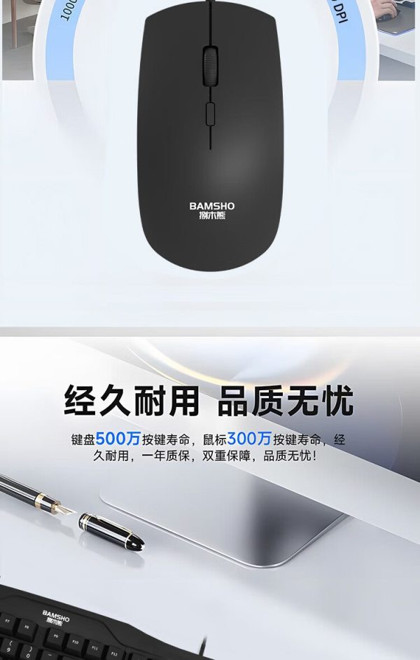 商品名称:捌木熊 GJC-YXJS00003 有线键盘鼠标套装(单位:套)黑色