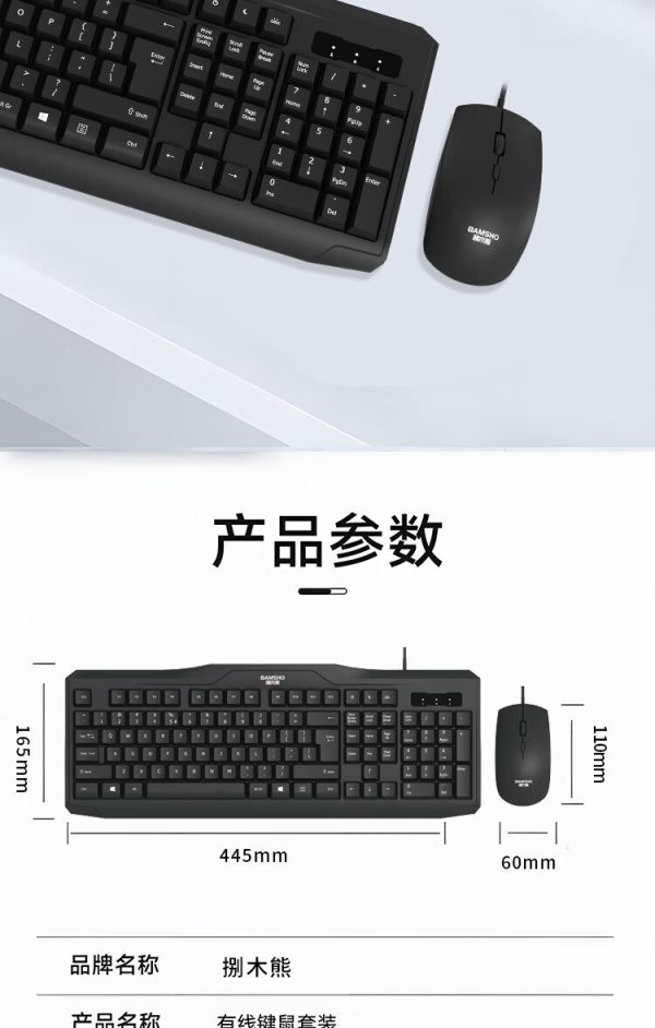 捌木熊 GJC-YXJS00003 有线键盘鼠标套装(单位:套)黑色