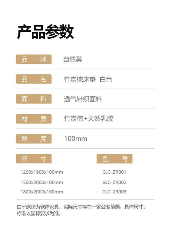 商品名称:自然巢 舒睡床垫 家用 宿舍 席梦思护脊床垫 白色 厚21cm 150x200cm