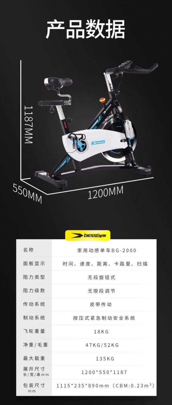 商品名称:必动(BESSGYM) BG-2000 1200*550*1187mm 动感单车 (计价单位:台)