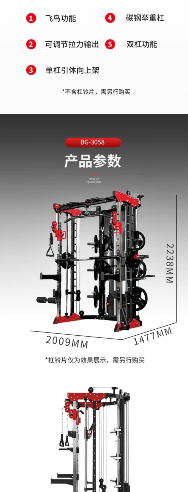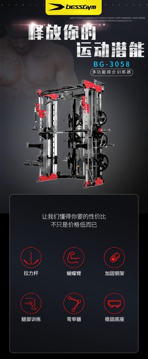 商品名称:必动(BESSGYM) BG-3058 2009*2238*1477mm 多功能训练器 (计价单位:台)