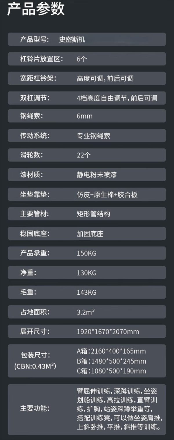 商品名称:必动(BESSGYM) MS480 1920*1670*2070mm 史密斯机 (计价单位:台)