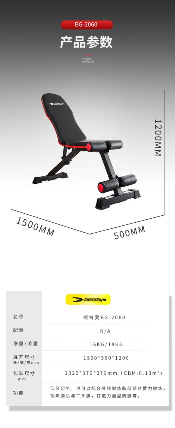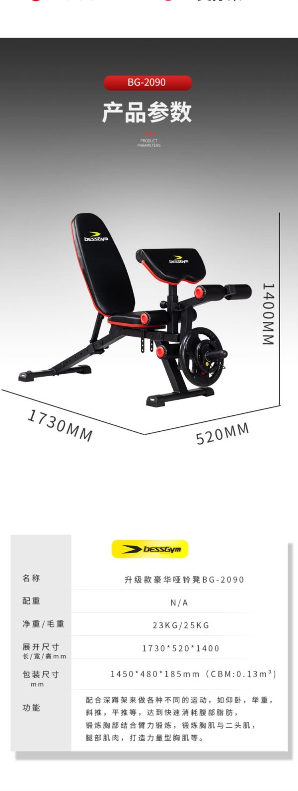 商品名称:必动(BESSGYM) BG-2090 升级版(不含杠铃)1730*520*1400mm 哑铃凳 (计价单位:台)