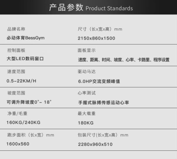 商品名称:必动(BESSGYM) X810 2150*860*1500mm 跑步机 (计价单位:台)