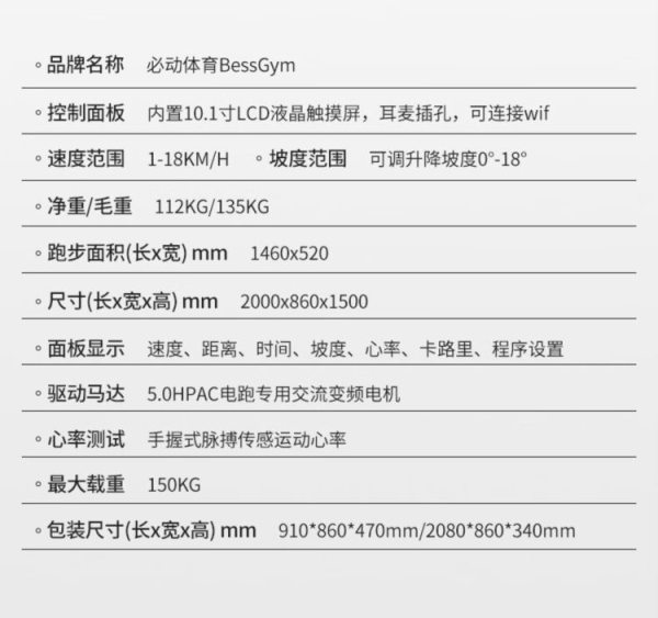 商品名称:必动(BESSGYM) BG-A6 2000*860*1500mm 跑步机 (计价单位:台)