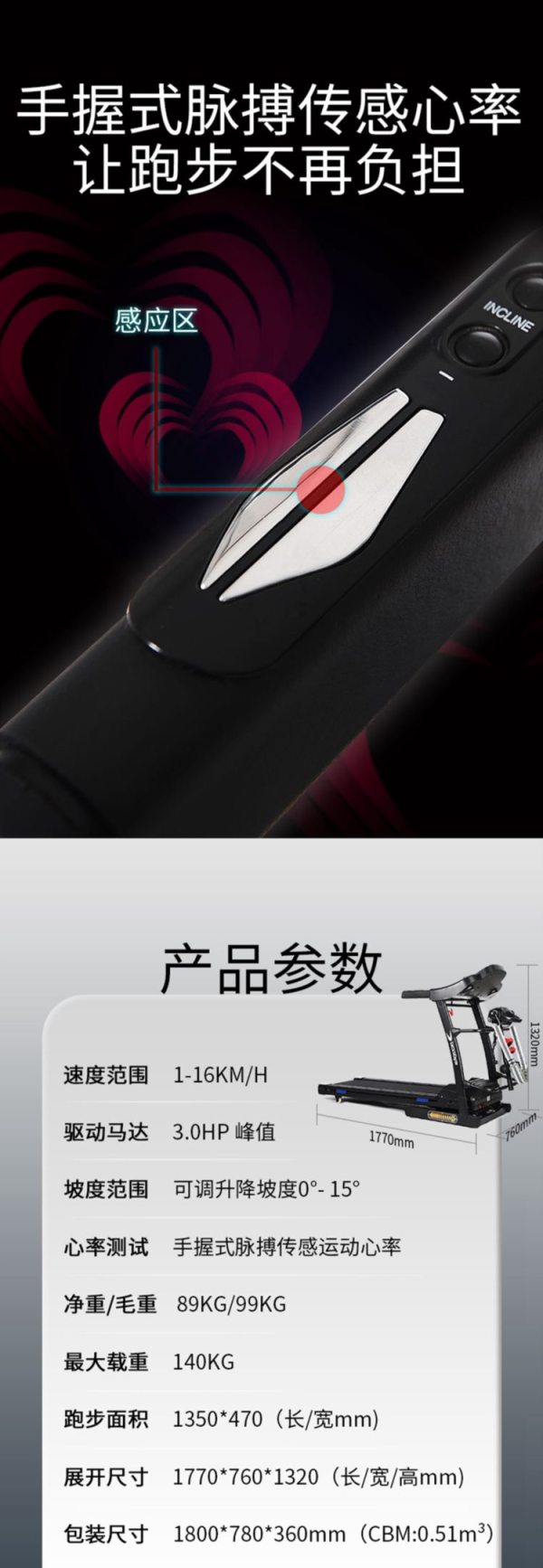商品名称:必动(BESSGYM) BG-A95 1770*760*1320mm 跑步机 (计价单位:台)