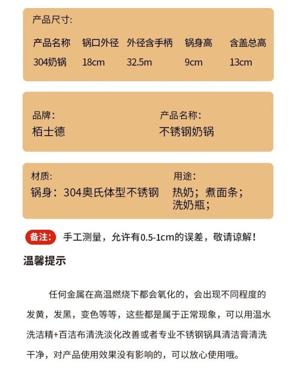 商品名称:栢士德(BYSTON) BST-102D 18cm 304不锈钢 奶锅 (计价单位:个)