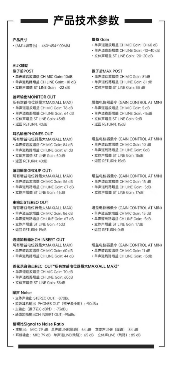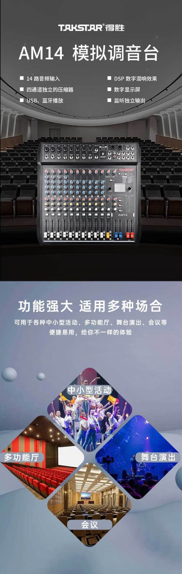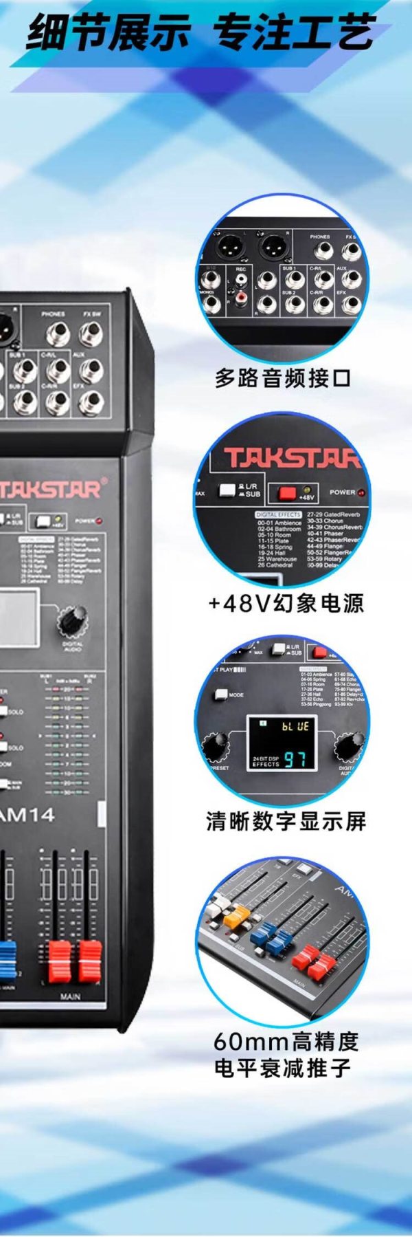 商品名称:得胜(TAKSTAR) AM14 460*454*100mm 调音台 黑色 (计价单位:台)