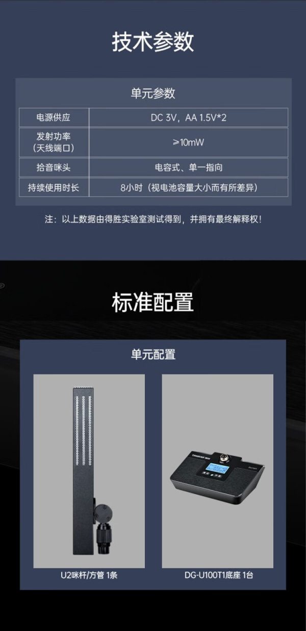 商品名称:得胜(TAKSTAR) DG-U100T1 DC 3V,AA 1.5V*2 方形会议麦 黑色 (计价单位:台)