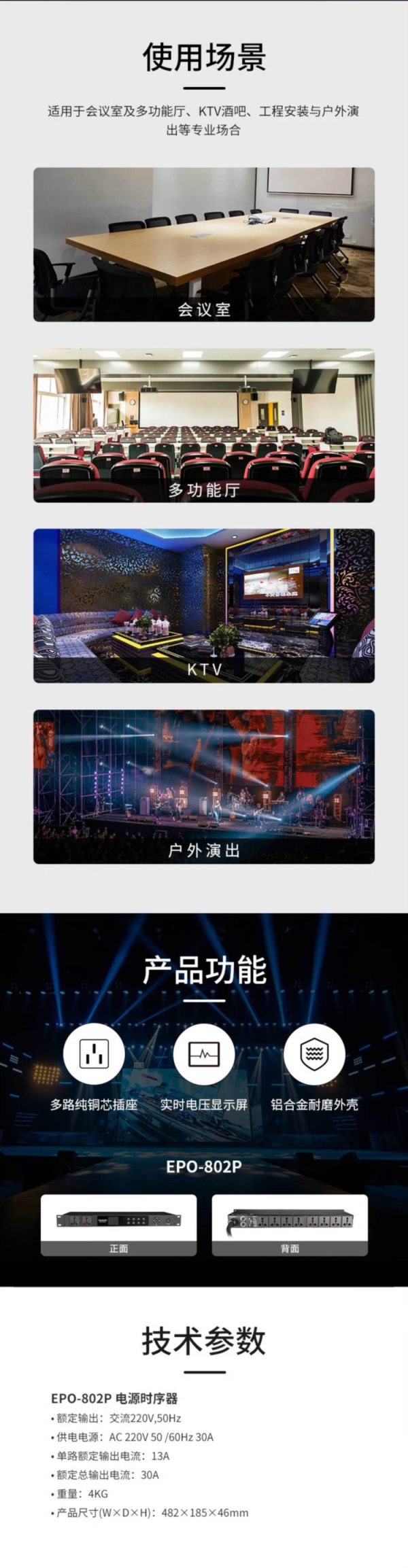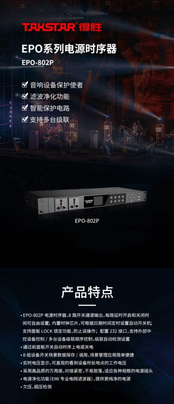 商品名称:得胜(TAKSTAR) EPO-802P 交流220V,50HZ 电源时序器 黑色 (计价单位:台)