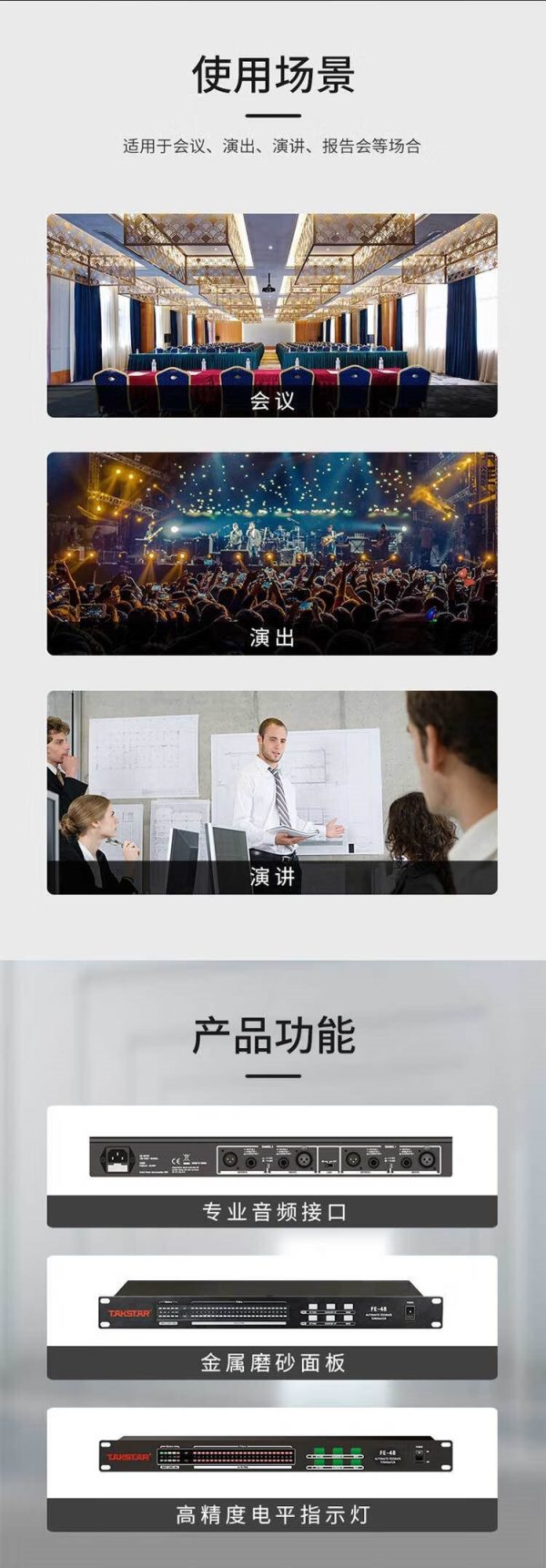 商品名称:得胜(TAKSTAR) FE-48 消耗功率:15W 自动反馈抑制处理器 黑色 (计价单位:台)