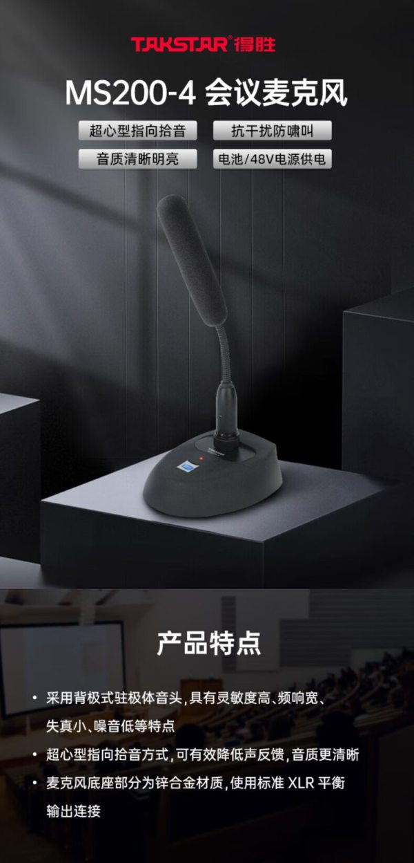商品名称:得胜(TAKSTAR) MS200-4 100Hz-16kHz 会议麦克风 黑色 (计价单位:台)