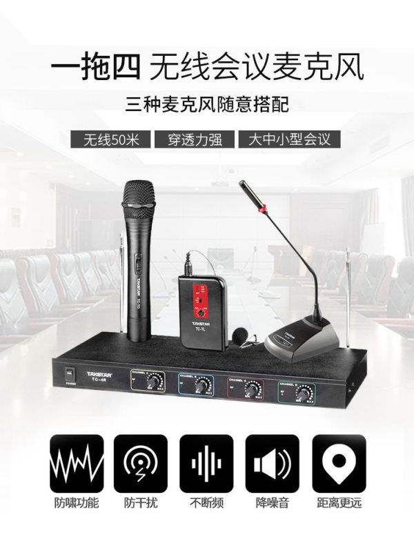 商品名称:得胜(TAKSTAR) TC-4R 无线50米 一拖四鹅颈式 麦克风 黑色 (计价单位:套)