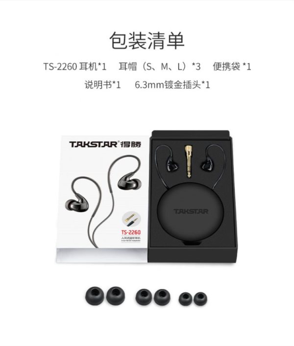 商品名称:得胜(TAKSTAR) TS-2260 入耳式有线耳机 黑色 (计价单位:副)