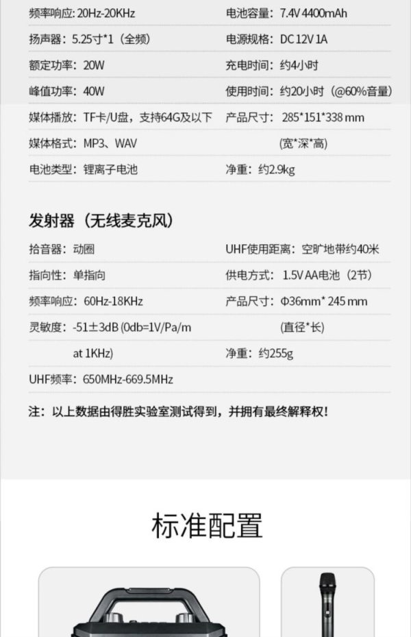 商品名称:得胜(TAKSTAR) WDA-500 手持版无线户外蓝牙音箱 黑色 (计价单位:台)