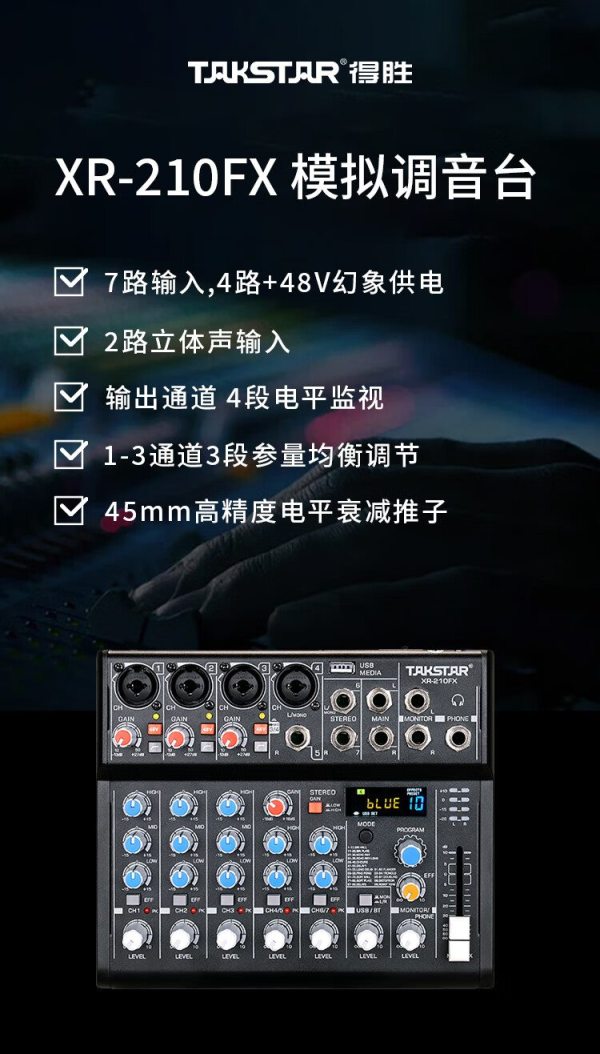 商品名称:得胜(TAKSTAR) XR-210FX +10dB至+60dB 模拟调音台 黑色 (计价单位:套)