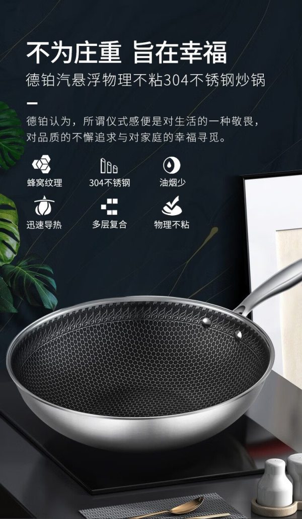 商品名称:德铂(Debo) DEP-726 32cm 304不锈钢 炒锅 (计价单位:个)