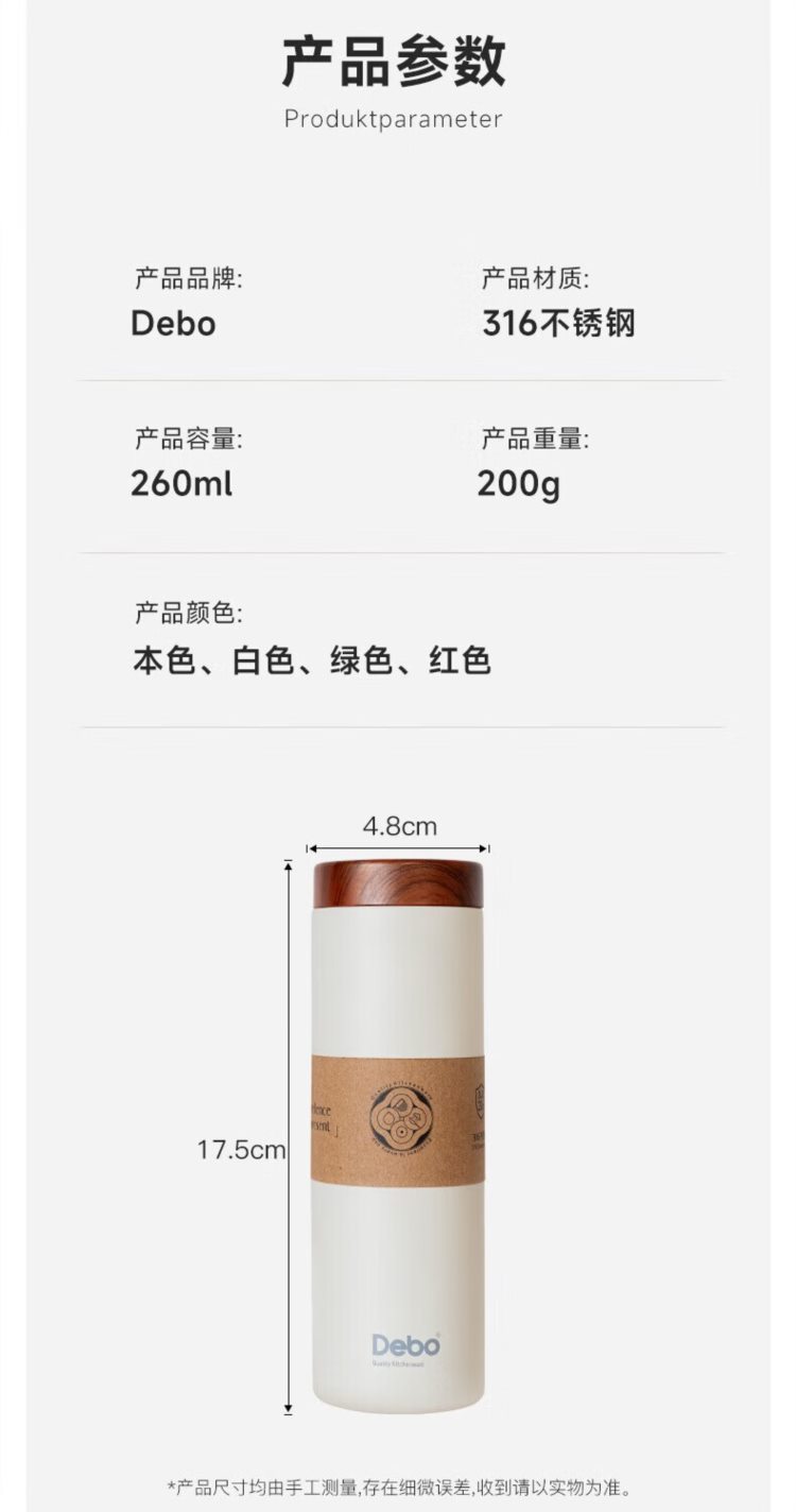 商品名称:德铂(Debo) DEP-852 260ml 保温杯 白色 (计价单位:个)