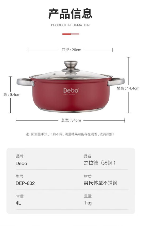 商品名称:德铂(Debo) DEP-DS214 26cm 201不锈钢 汤锅 (计价单位:个)