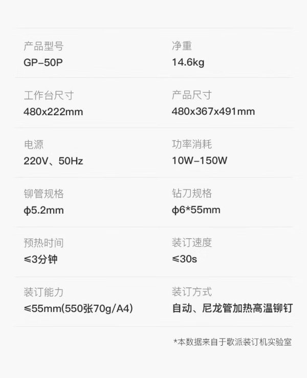 商品名称:歌派 GP-50P 装订机 (计价单位:台)