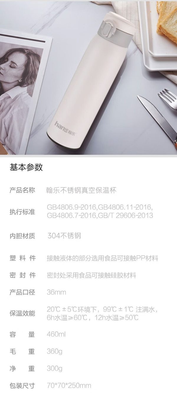 商品名称:翰乐 500ml 保温杯 白色 (计价单位:个)