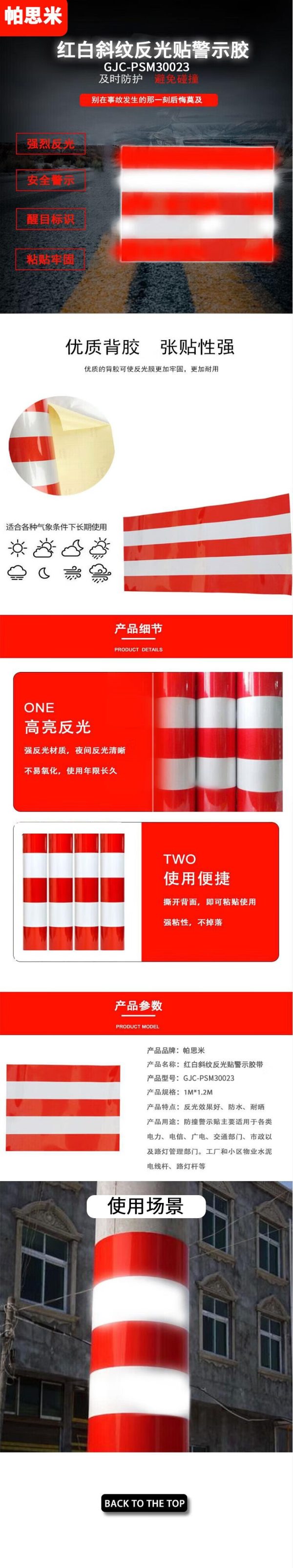 商品名称:帕思米(PASIMI) GJC-PSM30023 1.2米*1米 PP材质 警示胶带 红白斜纹 (计价单位:张)