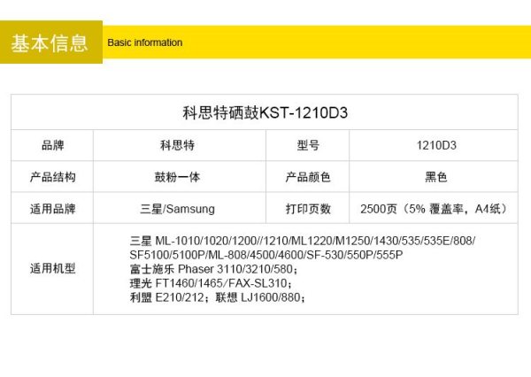 商品名称:科思特(KST) 1210 2500页 适用三星ML 1220 1250 1430 4500 4600 SF 555P 535 535E 硒鼓 黑色 (计价单位:个)