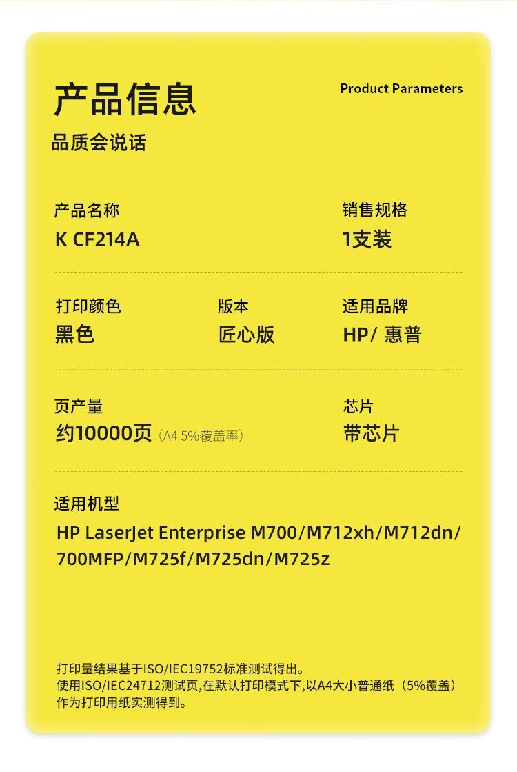商品名称:科思特(KST) CF214A匠心版 约10000页 适用惠普打印机700 M712xh/n/dn MFP M725f/dn/z 硒鼓 黑色 (计价单位:个)
