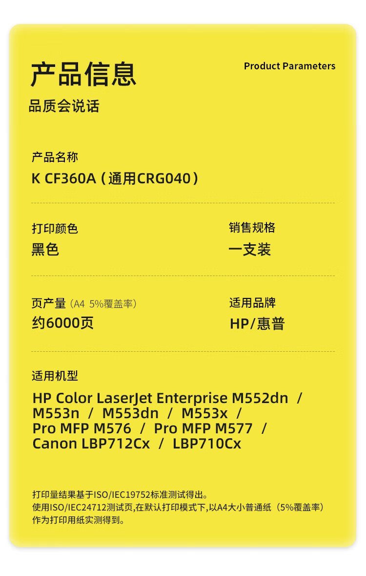 商品名称:科思特(KST) CF360A专业版 约6000页 适用惠普HP Color LaserJet EnterpriSe M552dn M553n M553dn M553x等 硒鼓 黑色 (计价单位:支)