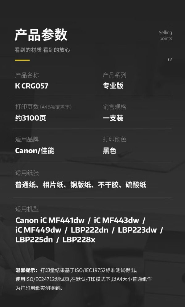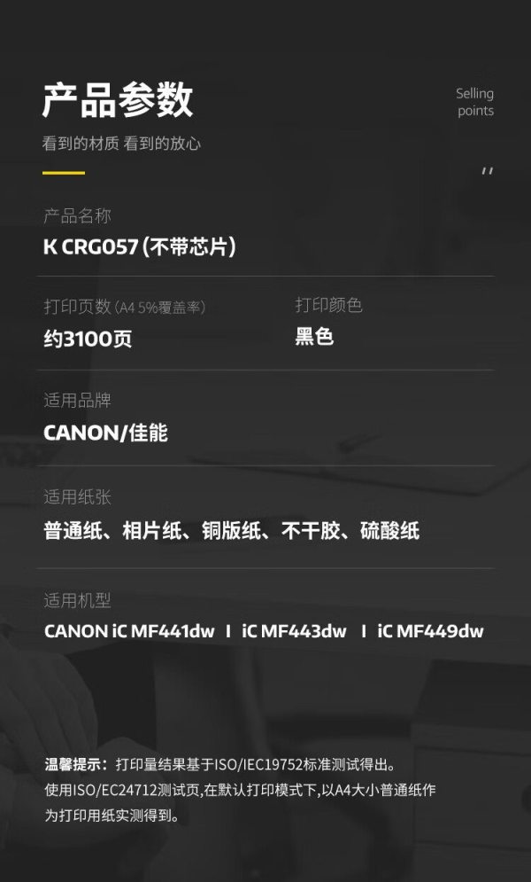 商品名称:科思特(KST) CRG057专业版不带芯片 3100页 适用佳能Canon ic MF441/443/449dw 硒鼓 黑色 (计价单位:个)