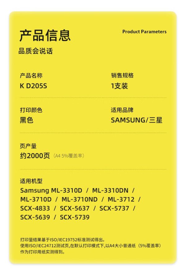 商品名称:科思特(KST) D205S专业版 2000页 适用三星 ML3310D/DN 3710D/ND SCX4833 5739 硒鼓 黑色 (计价单位:个)
