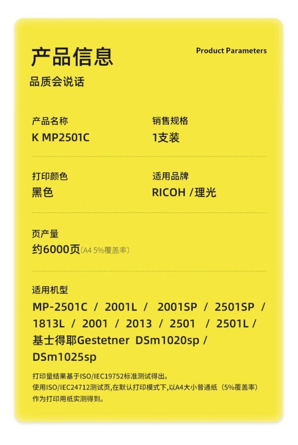 商品名称:科思特(KST) MP2501C 打印页数6000页 适用于理光MP-2501C 2001L 2001SP 2501SP 墨粉 黑色 (计价单位:支)
