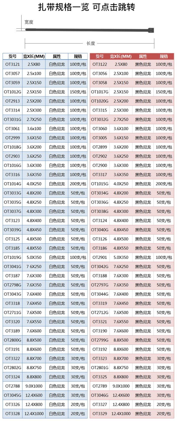 商品名称:卡夫威尔 OT3032G 2.7*250mm 100支装 自锁式尼龙扎带 黑色 (计价单位:包)