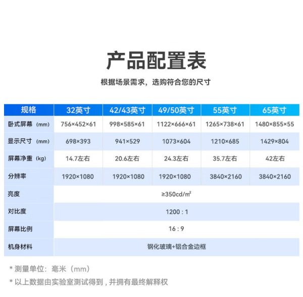 商品名称:互视达(HUSHIDA) WSCM-32 65英寸 Win10 内存16G+硬盘256G 广告机 (计价单位:台)