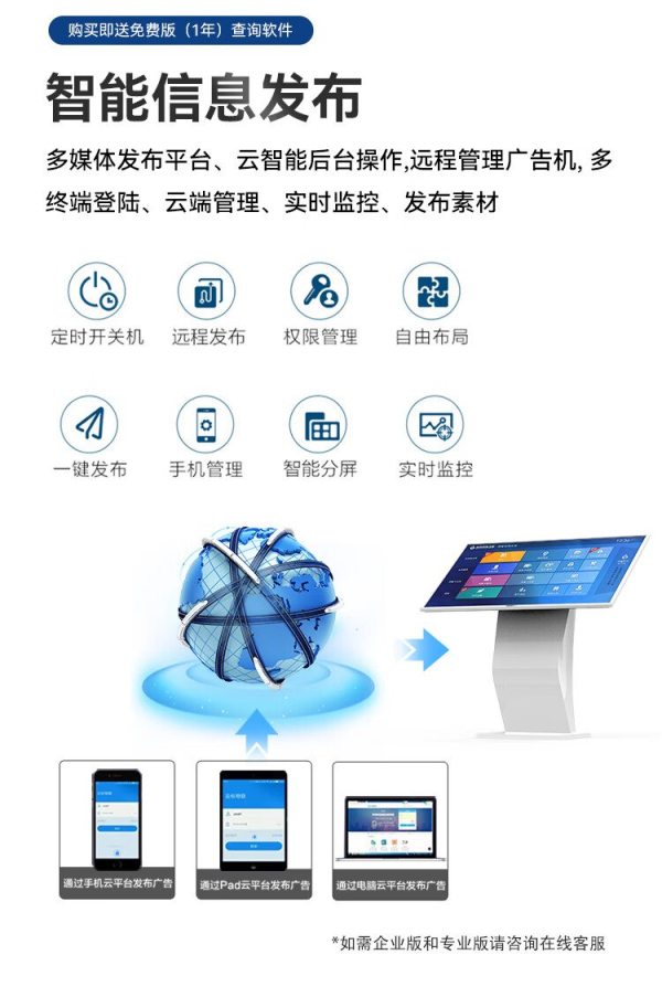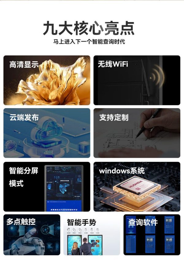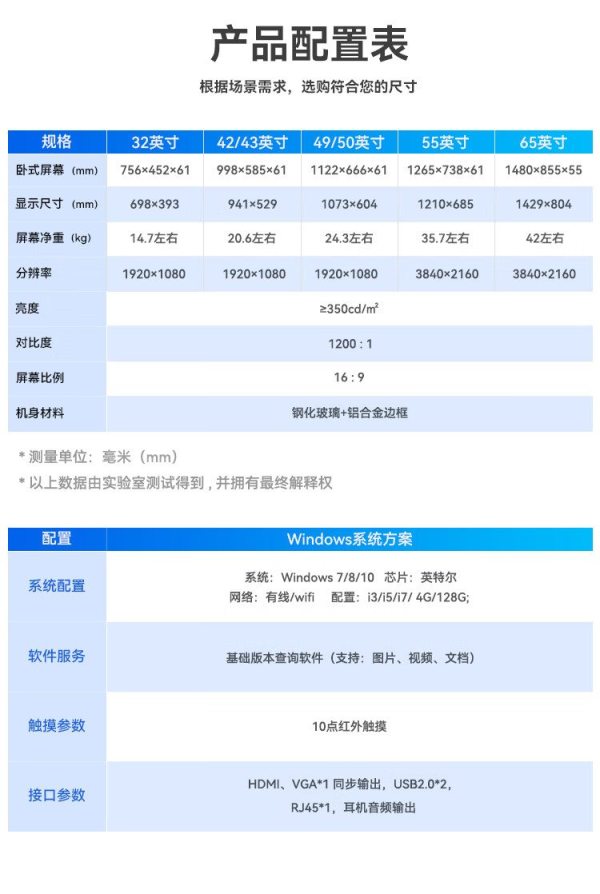 商品名称:互视达(HUSHIDA)CW-ZZGW-321BG 32寸 I7/8G/128G 壁挂式红外触摸广告机 单位:台