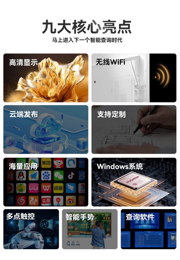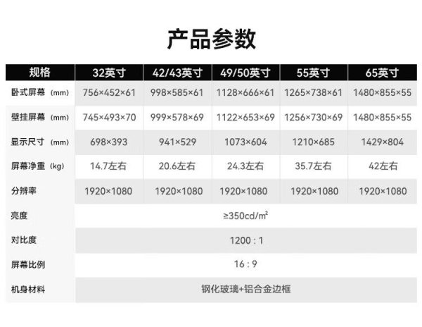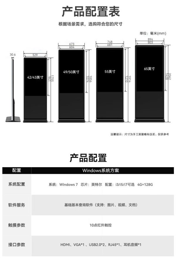商品名称:互视达(HUSHIDA)CW-ZZGW-32WSG 32寸 I7/8G/128G 卧式红外触摸广告机 单位:台