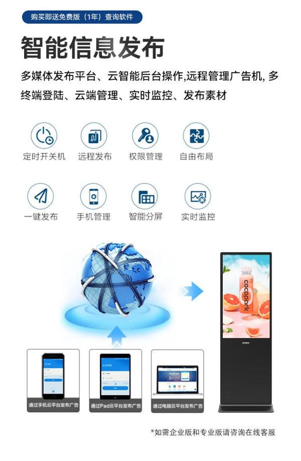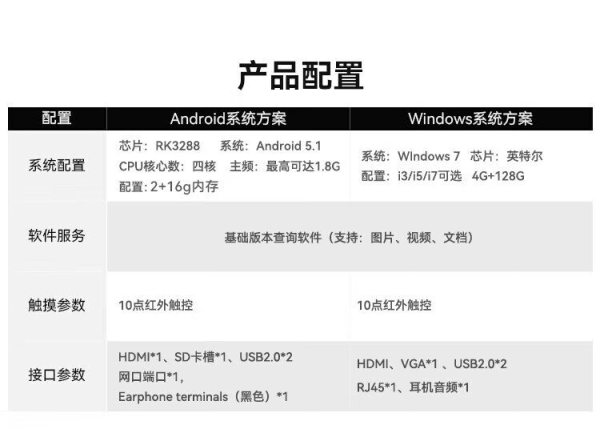 商品名称:互视达(HUSHIDA)CW-ZZGW-55WSG 55寸 I5/8G/128G 卧式红外触摸广告机 单位:台