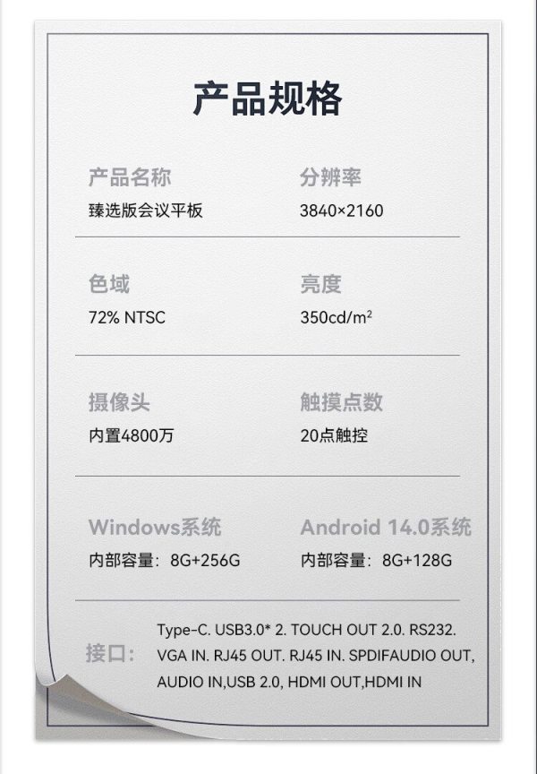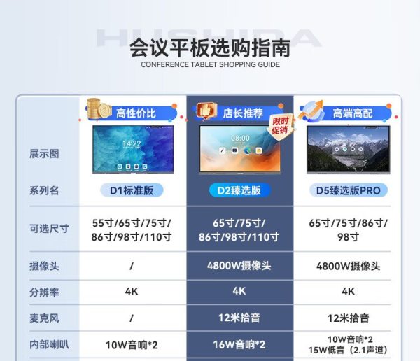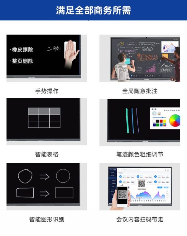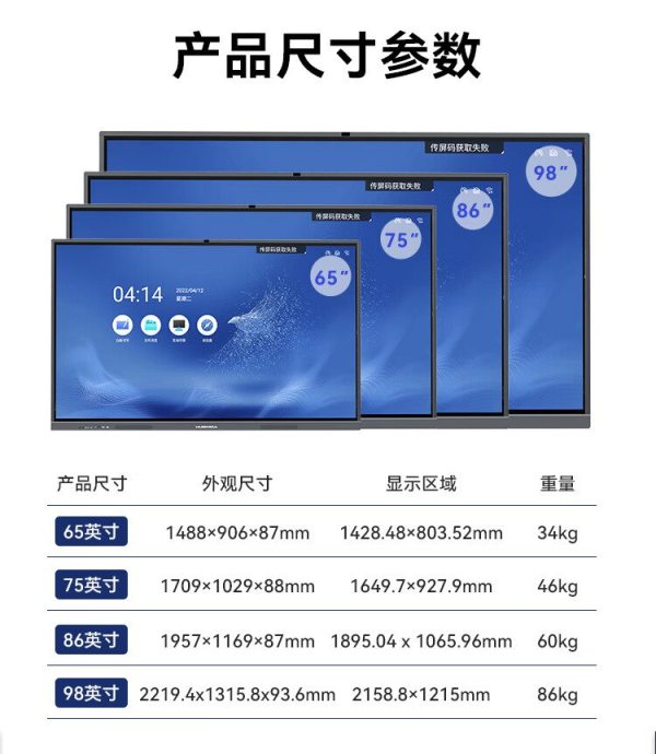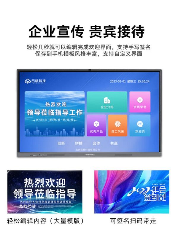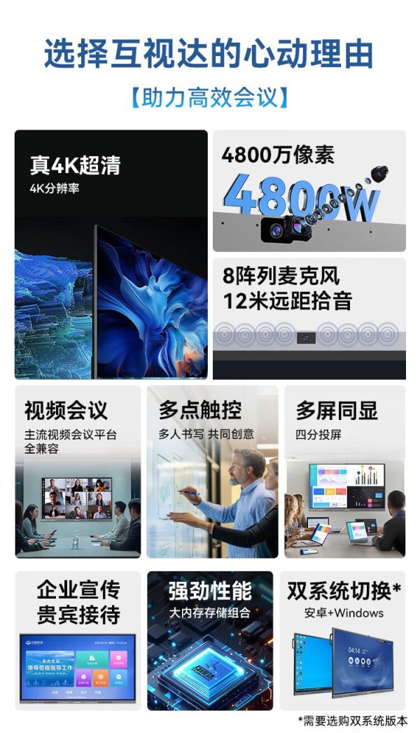 商品名称:互视达(HUSHIDA)CW-ZZGW-752DG 75寸 安卓4G+32G i7/8G+256G 壁挂式内置摄像头麦克风4K防眩光会议一体机 单位:台