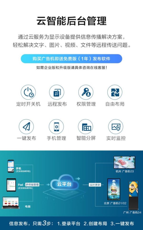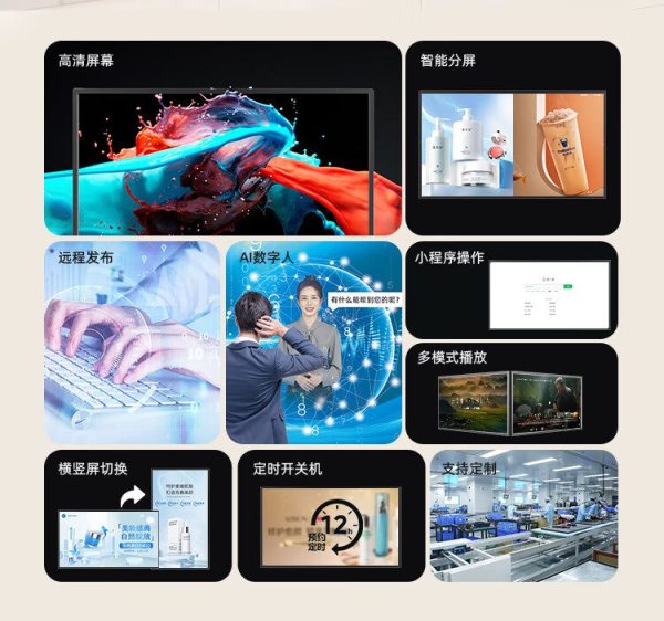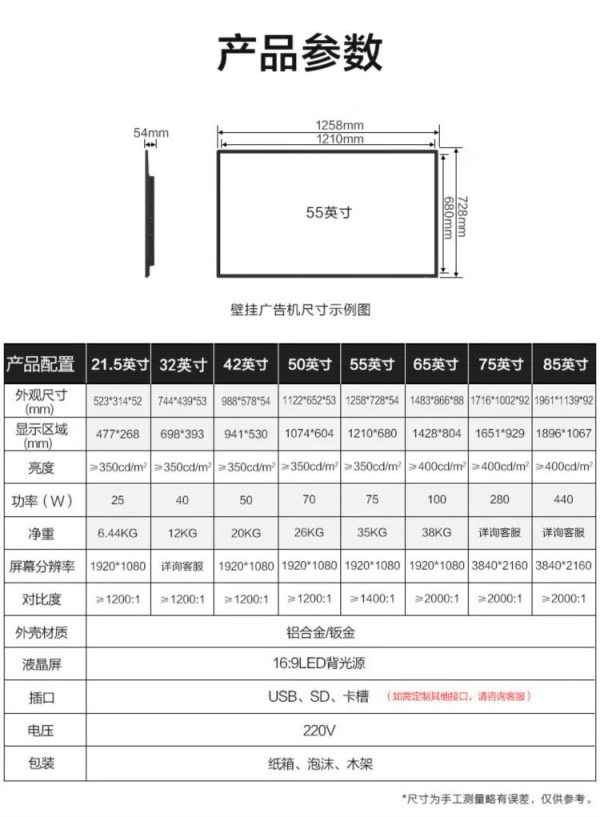 商品名称:互视达(HUSHIDA)CW-ZZGW-86G 86寸 安卓2+16G 壁挂式广告机 单位:台