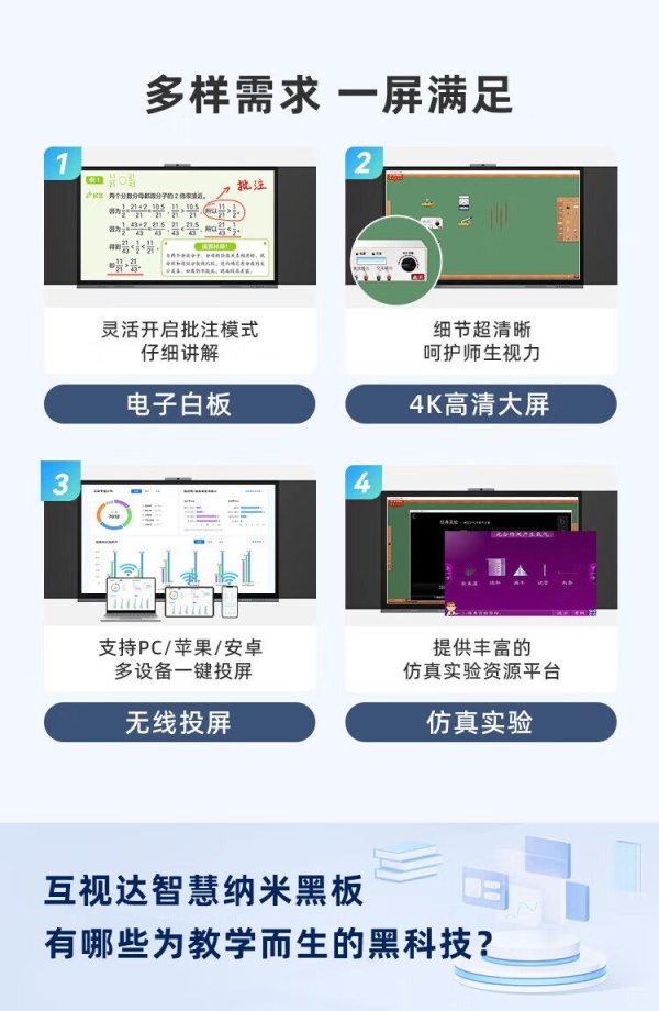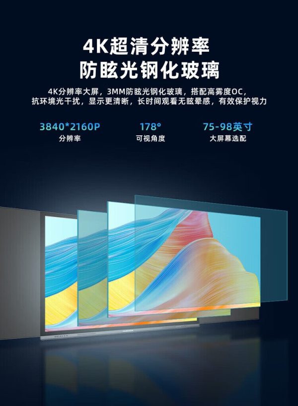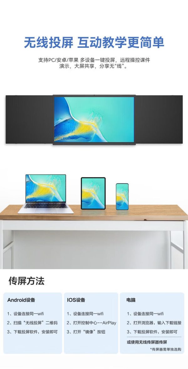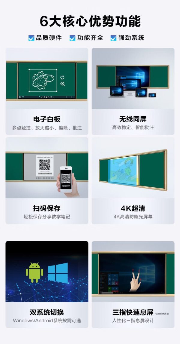 商品名称:互视达(HUSHIDA)CW-ZZGW-863CG 86寸 安卓4G+32G i7/8G+256G 壁挂式纳米黑板 单位:台