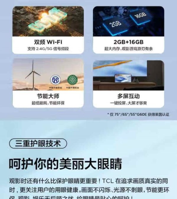 TCL 75G60E 75英寸 2+16GB 电视 (计价单位:台)
